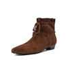 These Winter Women Boots aren’t just another pair of shoes—they’re a stylish solution to all your winter wardrobe needs. The kid suede leather construction provides a soft feel with a sophisticated look, while the short plush lining ensures your feet stay warm and comfortable. The low heel offers just enough lift, and the square toe creates a modern silhouette that pairs effortlessly with your favorite outfits. The lace-up design lets you adjust the fit for all-day comfort, so you can enjoy a secure and cozy fit no matter where your day takes you.