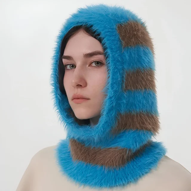 Wrap yourself in cozy comfort with this Two-Tone Plush Balaclava Beanie, designed to keep you warm while elevating your winter look. Inspired by retro, Y2K, and Korean street style, this fluffy knitted hat blends fashion and function in one soft, stylish piece. The plush fabric feels gentle on your skin, while the snug balaclava design protects your head, ears, and neck from cold wind. Whether you’re heading out for a casual day or layering up for chilly weather, this beanie adds a bold striped touch to any outfit.