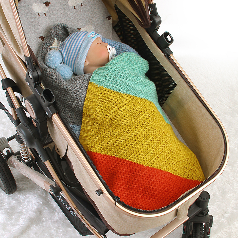Brighten up your little one’s day with our Fashion Rainbow Striped Baby Blanket! This beautifully crafted blanket, measuring 100 x 80 cm (approximately 39 x 31 inches), is perfect for newborns, providing warmth and style in equal measure. Whether you’re using it for swaddling, in the crib, or as a cozy stroller blanket, this soft knit quilt brings joy and comfort to every moment.