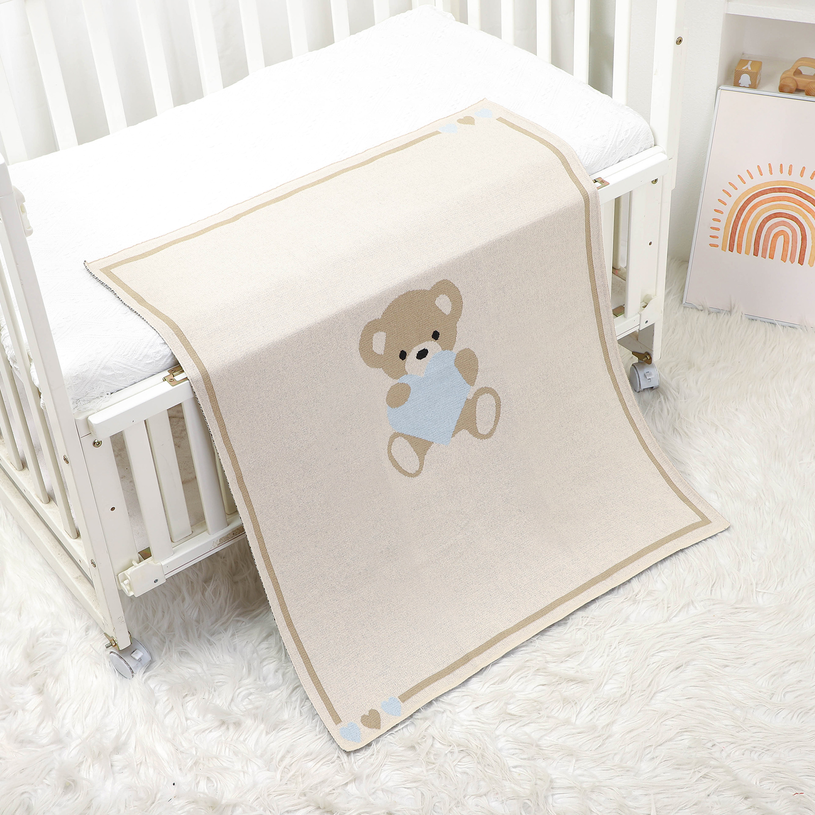 This cute, super-soft baby blanket is crafted with love and attention to detail to ensure comfort and style for your little one. The gentle cotton material is breathable and hypoallergenic, making it safe and comfortable for sensitive newborn skin. Whether you’re on a walk in the stroller, swaddling your baby at night, or cuddling up for a nap, this blanket is perfect for every occasion. Its charming cartoon bear pattern and unisex design make it a thoughtful gift for new parents or a delightful addition to your baby’s essentials.