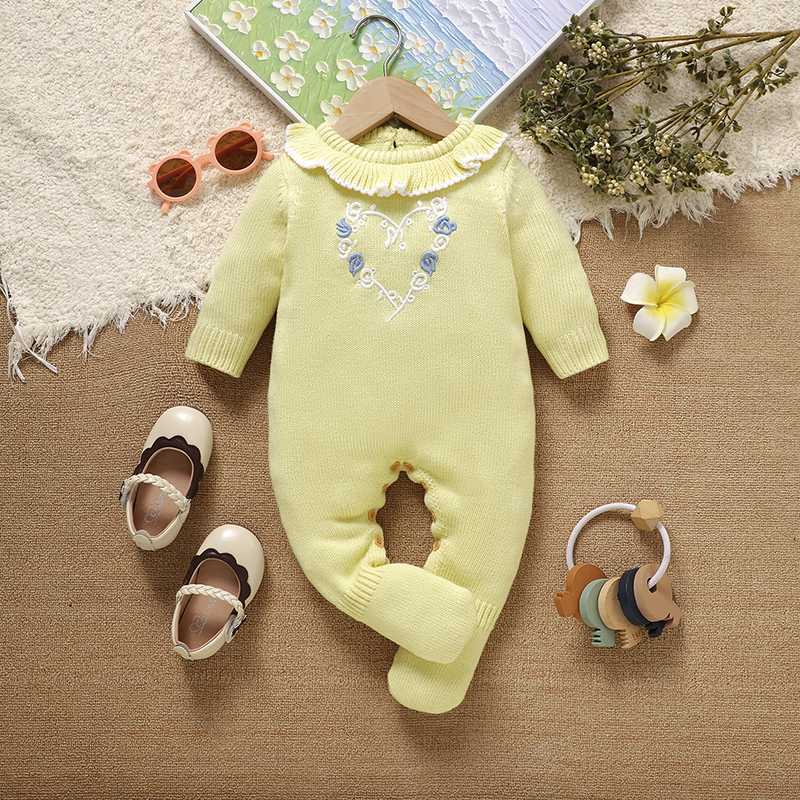 Whether you’re dressing your little girl for a family outing or snuggling her up on a chilly day, this romper delivers the best of both worlds — fashion and function. Its soft knit texture keeps her warm, while the delicate floral embroidery makes it stand out as a wardrobe favorite. It’s more than just baby clothing; it’s a keepsake piece that captures the innocence and joy of early childhood.