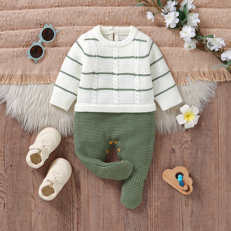 This romper is made for daily comfort and easy dressing. The pullover design and round neckline allow for quick outfit changes, while the flexible knit stretches gently to move with your baby. The classic striped pattern gives it a modern yet sweet look that works beautifully for both baby girls and boys. It fits true to size and is ideal for autumn, spring, and winter layering.
