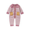 This long-sleeve romper features a classic striped pattern that adds a touch of fashion to your baby’s everyday wardrobe. The O-neck design makes it easy to slip on, and the single-breasted front closure ensures quick and fuss-free dressing. Soft, stretchy knit fabric offers a snug yet comfortable fit, allowing your baby to move freely whether it’s playtime, nap time, or a family outing.