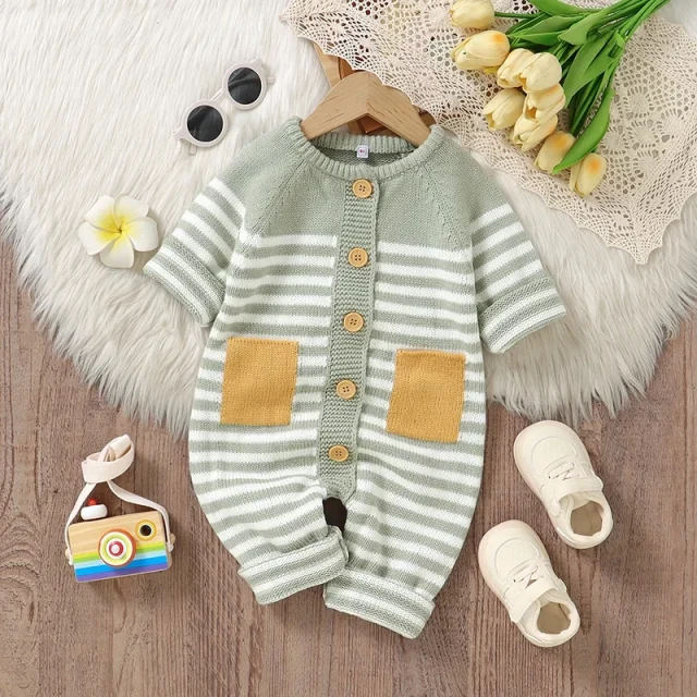 With its thoughtful blend of warmth, flexibility, and classic design, this romper makes dressing your baby a joy. The soft knitted texture provides comfort all day long, while the breathable material prevents irritation. Whether you’re heading out for a walk in the crisp autumn air or cuddling indoors on a winter morning, this jumpsuit keeps your baby snug, stylish, and happy.