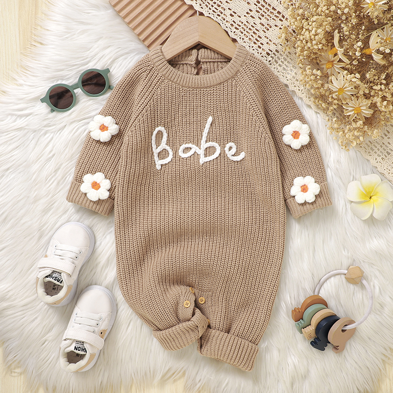 Wrap your baby in warmth, comfort, and charm with this beautifully knitted baby romper. Designed for everyday cuddles and special moments alike, this long-sleeve jumpsuit blends a cozy feel with a sweet, modern look. The soft knit texture and adorable 3D flower detail make it an instant favorite for parents who love simple yet stylish baby outfits. It is gentle on delicate skin and easy to wear, making dressing your little one a joy instead of a task.