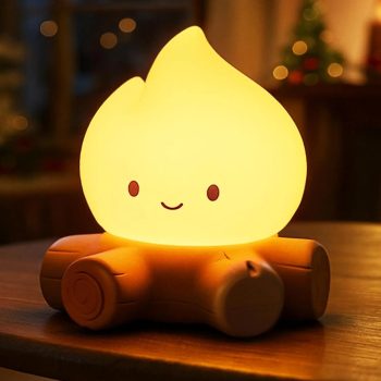 Campfire Night Light – Cute Tree Stump Silicone Nightlight for Bedroom & Desk with Stepless Dimming