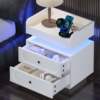 This elegant nightstand comes equipped with multi-color LED lighting that you can control effortlessly using the intelligent remote. Choose from a range of dimmable colors to create the perfect mood — whether you want a cozy warm tone for relaxation or a cool glow for late-night reading. The two rounded drawers offer ample storage for your books, glasses, and personal essentials, while smooth metal handles ensure easy access. With three-sided baffles on the tabletop, your items stay secure and neatly displayed.