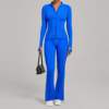 The long-sleeved top features a sleek zipper design, providing ease of wear and a modern, streamlined look. The matching leggings are form-fitting and designed to move with your body, offering a smooth and flattering silhouette. With its breathable fabric and jinammonia brushed finish, this workout suit ensures you stay comfortable during even the most intense activities. Perfect for every season—whether it’s the warmth of summer or the crispness of fall—this yoga set offers year-round versatility.