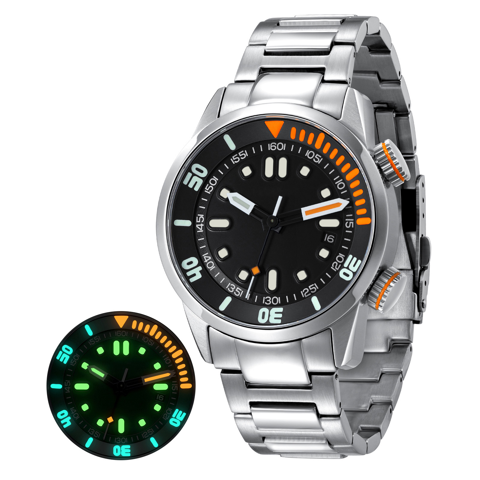 Powered by a precise Japanese Miyota 8215 automatic movement, this timepiece delivers reliable accuracy and self-winding convenience. The screw-down crown and 20ATM (200-meter) water resistance make it a true diver’s essential, while the sapphire glass lens and exhibition back showcase the mechanical artistry inside. The dual fluorescent rotating bezel offers intuitive timing for underwater adventures, and the strong stainless steel or flexible silicone strap ensures maximum comfort and durability.