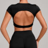 Upgrade your activewear with a top that makes you feel as strong and stylish as you are. Slip into this beautiful backless tee and experience effortless movement, breathable comfort, and sleek performance—every time you train.