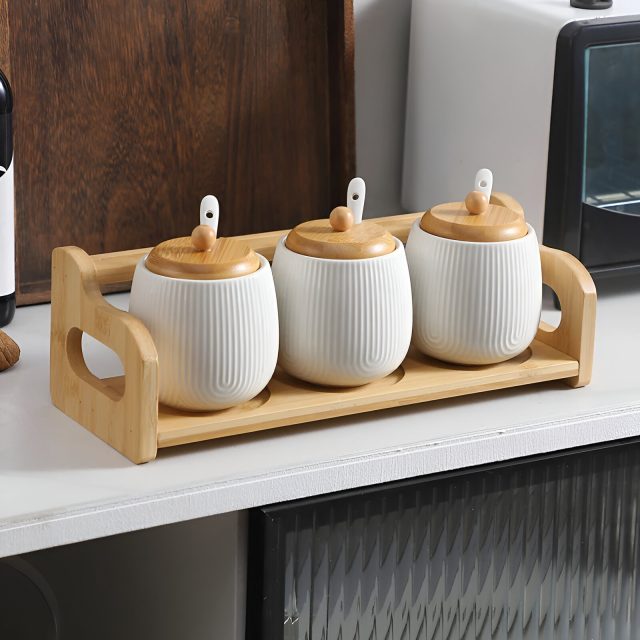 Bring a touch of Nordic elegance to your kitchen with this Ceramic Seasoning Jar Set. Designed for both beauty and practicality, this stylish spice storage box keeps your favorite seasonings – from salt and sugar to herbs and monosodium glutamate – neatly organized and easily accessible. Each ceramic jar sits securely in a smooth, minimalist tray that adds a refined charm to any countertop or dining table.