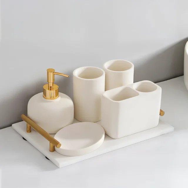 Bring harmony, convenience and style to your bathroom with this modern ceramic toiletry set. Whether you’re refreshing your space or searching for a thoughtful housewarming gift, this set delivers both elegance and everyday practicality. Make your bathroom feel more like home — order yours today and enjoy the beauty of simplicity.