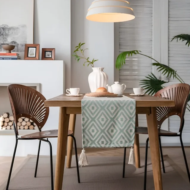 Nordic Geometric Jacquard Table Runner with Tassels – Elegant Dining Decor