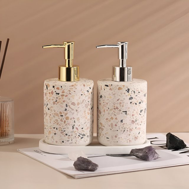 This dispenser stands out because it combines practical use with artistic beauty. Its terrazzo pattern adds texture and visual interest, turning a simple everyday item into a stylish décor element. Use it at home, in the office, or in a guest bathroom to elevate the space instantly. It’s best used anywhere you want a cleaner, more organized, and visually appealing setup.