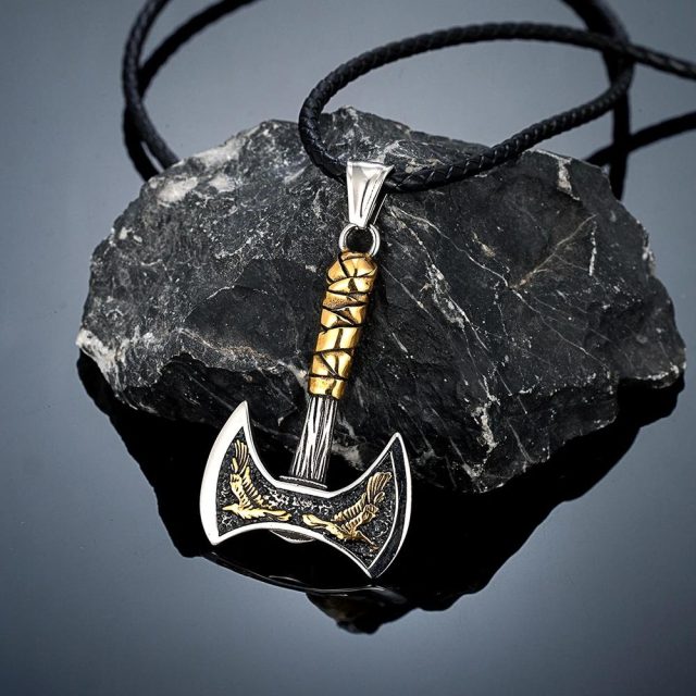 Carry the spirit of ancient warriors wherever you go with this striking Viking Axe Pendant Necklace. Designed with intricate details and inspired by Norse mythology, this piece symbolizes strength, courage, and wisdom. The double-edged axe pendant, adorned with runic and raven motifs, is a timeless amulet that embodies protection and the fearless power of the Viking spirit.
