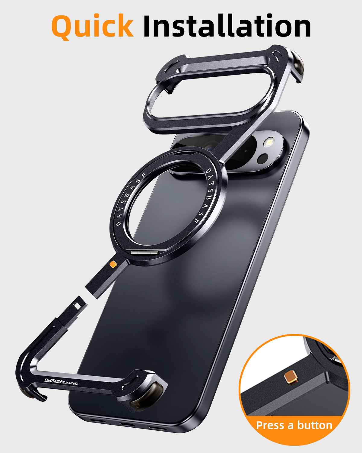 Protect your Google Pixel 10 Pro with our Metal Frameless Phone Case, a stylish and functional accessory that combines aluminum durability with modern design. This innovative phone case offers a sleek, frameless look while enhancing your device’s safety with shock-proof protection against everyday bumps and drops. Featuring a 360° rotatable magnetic stand, it lets you enjoy hands-free viewing at any angle, making it perfect for watching videos, video calls, or browsing your favorite content!