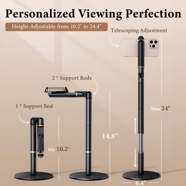 This phone holder is not just functional—it’s designed with versatility in mind. The adjustable height and angles allow you to find the most comfortable position for your needs, while the 360° rotation ensures you never miss the right view. The strong, stable base keeps your device secure, so you can stay focused without worrying about slips or falls. It’s a true “lazy bracket” stand, perfect for hassle-free use anywhere around your home or office.