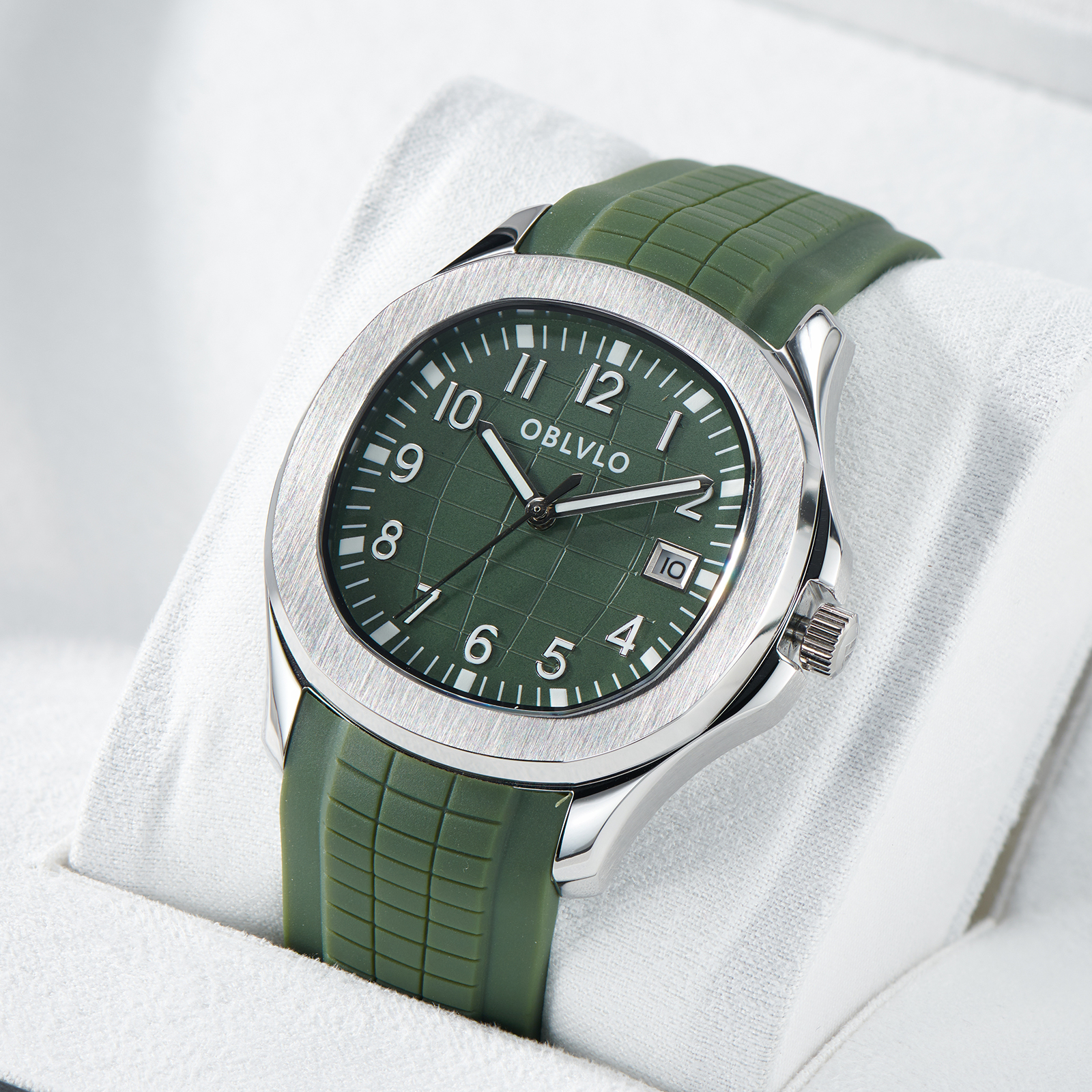 Step into a world where sport meets sophistication. This square green dial automatic watch is designed to turn heads while keeping up with your active lifestyle. Its bold, numberless display exudes modern minimalism, while the deep green dial adds a touch of refined character. Built for men who value precision, durability, and standout style, this timepiece is more than an accessory — it’s a statement.