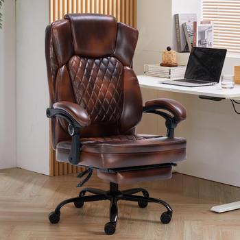 Big and Tall Executive Office Chair with Footrest, Ergonomic Leather Desk Chair