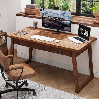55″ Solid Wood Executive Desk with Drawer – Mid-Century Modern Office Table