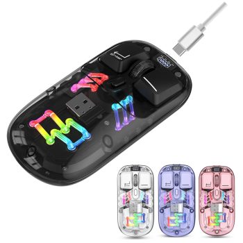 Transparent Dual-Mode Wireless Mouse with RGB Backlight and Rechargeable Battery