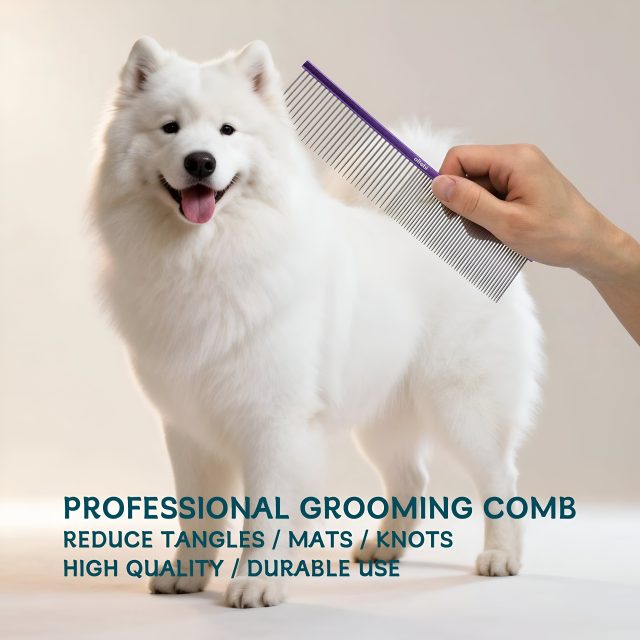 Turn your daily grooming routine into a calm, bonding experience with this professional long-tooth stainless steel pet comb. Designed for both dogs and cats, it gently works through tough knots, stubborn mats, and loose fur without pulling or scratching. Whether you have a fluffy poodle, a thick-coated goldendoodle, or a long-haired cat, this comb helps you achieve a clean, smooth, tangle-free coat with minimal effort.