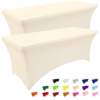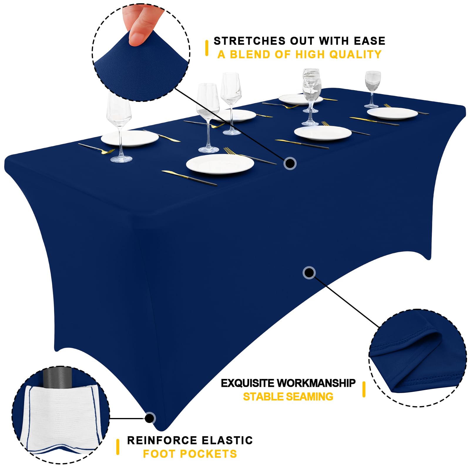 Crafted from a durable blend of 90% polyester and 10% spandex, this table cover delivers excellent elasticity and long-lasting strength. The four reinforced elastic leg pockets ensure a snug fit that won’t slip or move, keeping your table neatly covered from top to bottom. It stretches perfectly over standard rectangular folding tables, offering complete coverage and a smooth, wrinkle-free finish.
