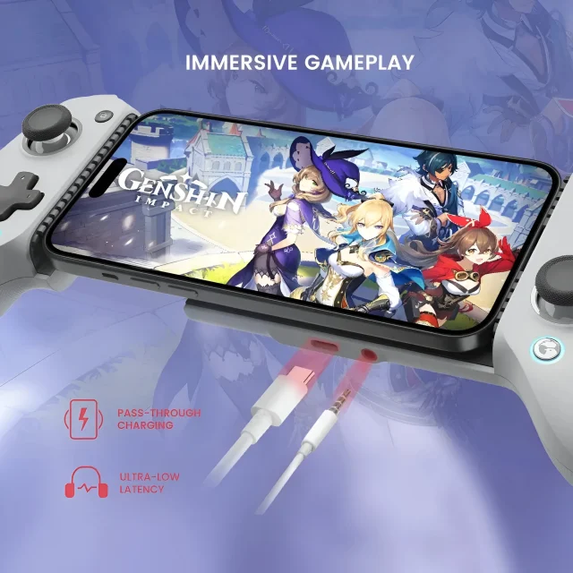A movable Type-C connection ensures a solid, reliable link to your device without wobble or lag. Combined with pass-through charging, you can play uninterrupted even as your phone powers up — ideal for intense gaming sessions or long cloud-gaming marathons.