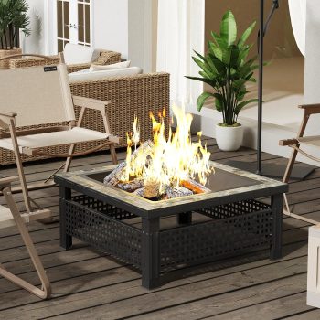 32-Inch Outdoor Fire Pit with Grill and Poker