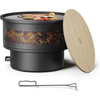 26-Inch Outdoor Fire Pit Table with Grill, Lid & Poker – 3-in-1 Wood Burning Firepit
