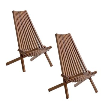 Folding Acacia Wood Lounge Chairs Set of 2 – Low Profile Indoor Outdoor Seating