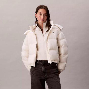 Calvin Klein Jeans Women’s White Hooded Turtleneck Zip Jacket – Fall/Winter