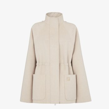 Fendi Beige Wool Parka Blouson Jacket with Detachable Hood