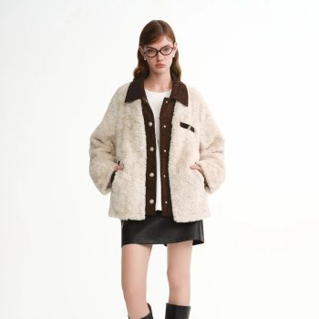 Y2K Vintage Plush Lapel Faux Leather Winter Coat for Women