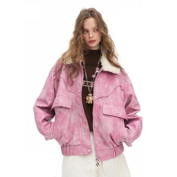 Y2K Ombre Plush Faux Leather Street Jacket for Women
