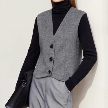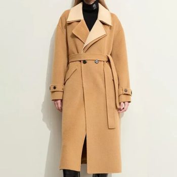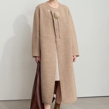 Minimalist Winter Wool Coat for Women with Removable Corsage