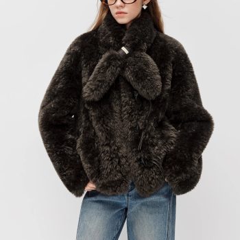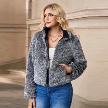 Women’s Faux Fur Zipper Winter Coat with Turn-Down Collar