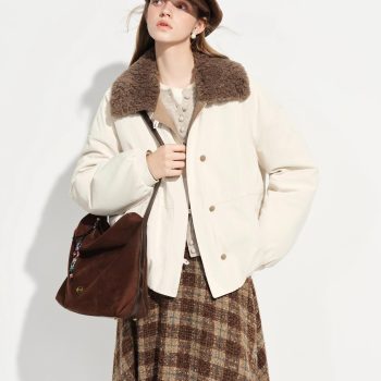 Women’s Retro Fur Trim Detachable Collar Winter Coat