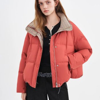 Double-Sided Reversible Standing Collar Down Coat for Women