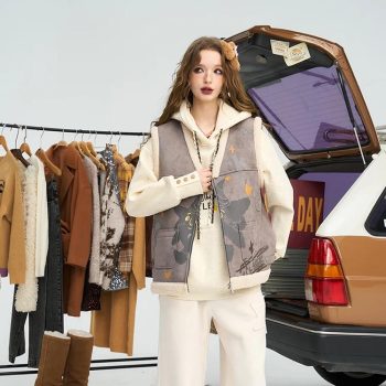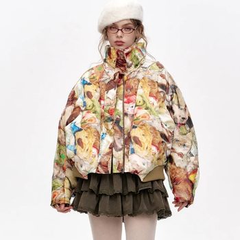 Stand Collar Cartoon Print Short Down Jacket for Women