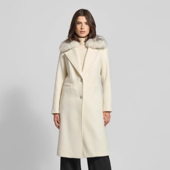 Guess Women’s White Wool-Blend Fall/Winter Coat with Front Pockets