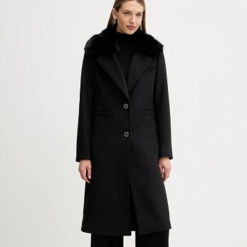 Guess Women’s Black Wool-Blend Button-Down Coat for Fall/Winter