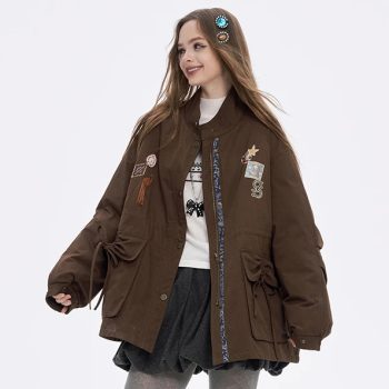 Women’s Winter Coarse Knit Patchwork Down Coat with Plush Collar