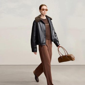 Women’s Winter PU Leather Down Coat with Detachable Fur Collar