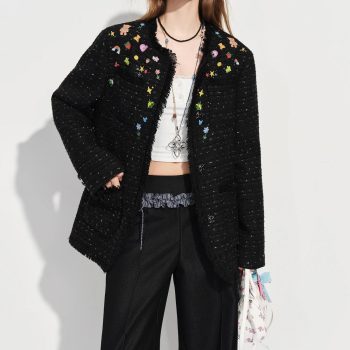 Hand-Painted Short Tweed Jacket – Winter Streetwear
