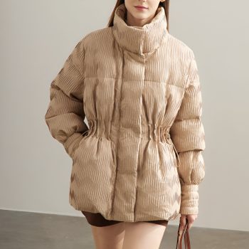 Women’s Cropped Down Puffer Jacket with Suede Patchwork & Stand Collar