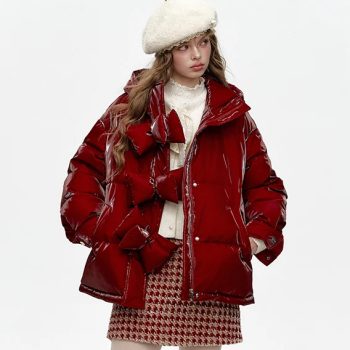 Winter Hooded Bow-Button Short Down Jacket for Women