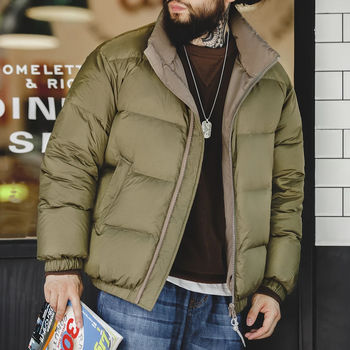 Men’s Reversible Winter Down Jacket with Stand Collar and Duck Down