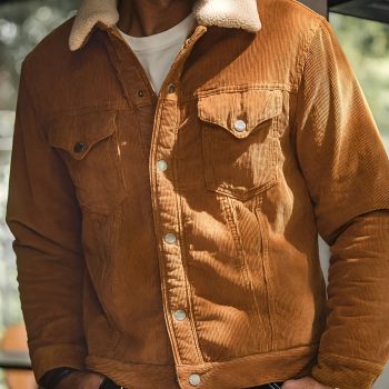 Men’s Ginger Corduroy Sherpa Lined Jacket – Warm Vintage Winter Coat