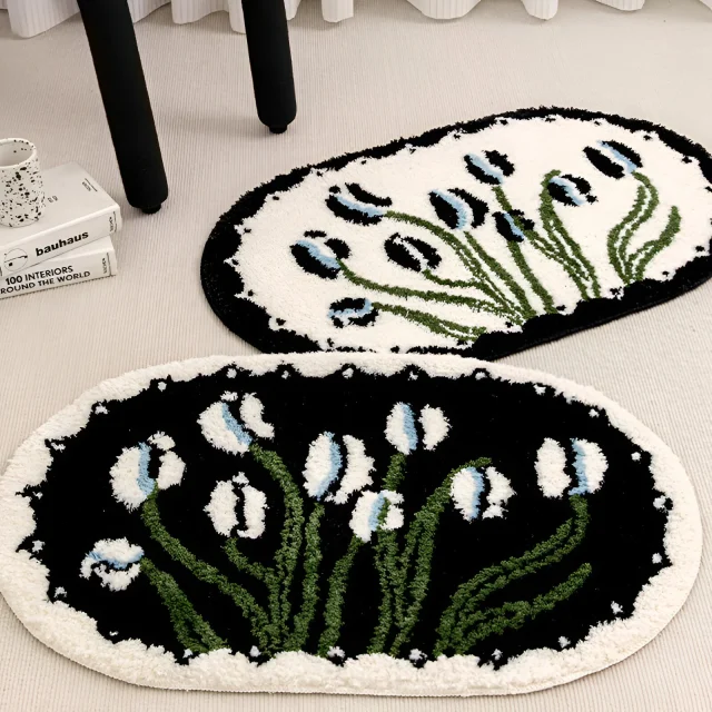 This Oval Tufting Tulip Bathmat is more than just a simple rug. It brings together style, comfort, and practicality in one. The soft black and white tones create a soothing, neutral foundation for any room, while the fluffy texture makes it feel like a little luxury beneath your feet. Whether you’re looking to add a touch of class to your bathroom or seeking a safety-conscious solution for your floors, this bathmat is the perfect choice.